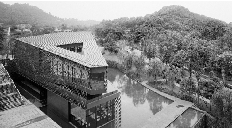 知美術(shù)館外形內(nèi)斂、極具禪意,由國(guó)際建筑大師隈研吾設(shè)計(jì),運(yùn)用水、瓦等元素,使建筑與自然有機(jī)相融,空靈寂靜,動(dòng)靜相宜,盡顯生生不息、道法自然的東方哲學(xué)。