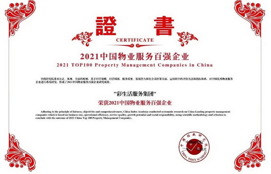 彩生活物業(yè)獲“2021中國(guó)物業(yè)服務(wù)百?gòu)?qiáng)服務(wù)質(zhì)量領(lǐng)先企業(yè)”;萬(wàn)象美物業(yè)獲“2021中國(guó)商業(yè)物業(yè)管理優(yōu)秀企業(yè)”第一名;開元國(guó)際物業(yè)獲“2021中國(guó)高端物業(yè)服務(wù)領(lǐng)先企業(yè)”、“2021中國(guó)特色物業(yè)服務(wù)領(lǐng)先企業(yè)-高端住宅”、“2021中國(guó)物業(yè)服務(wù)百?gòu)?qiáng)滿意度領(lǐng)先企業(yè)”。