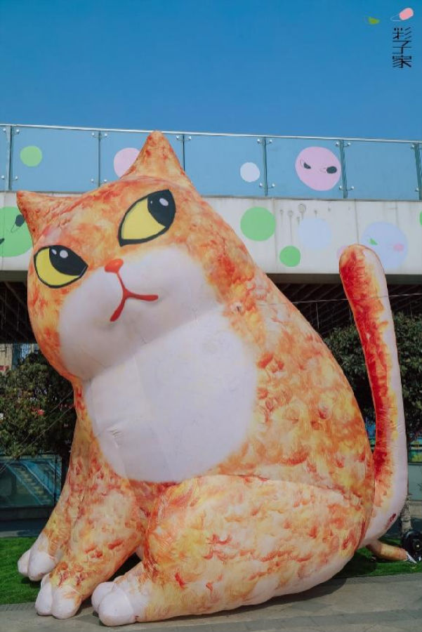 藝術(shù)家龍荻的「大貓」,同時還出現(xiàn)在了項目花生唐商場的中影派蒙影城——彩子家開業(yè)觀影會專場里,與80位客戶、粉絲共同縱享繽紛。