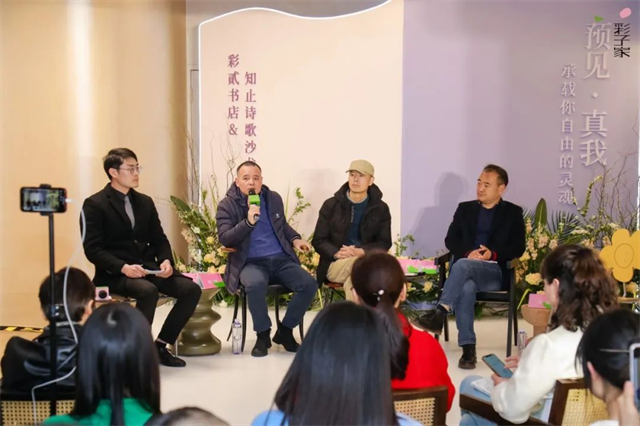開業(yè)當天,由「彩貳書店」與「彩子家咖啡吧」發(fā)起的首場詩歌沙龍開啟,特邀詩人黃梵、馬鈴薯兄弟、傅元峰、育邦,青年作家劉奇,以及獨立音樂人、職業(yè)鋼琴師、自由舞者等,與南京本土讀書成長社群金陵青年讀書會、南京詩歌愛好者,近百人一起,在文學的滋養(yǎng)中,走進詩歌的國度。